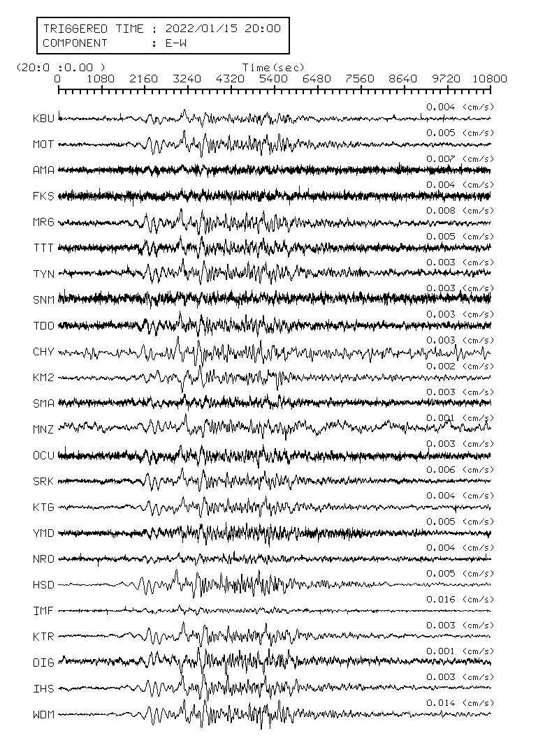 ※地震計の測定周波数帯より低い周波数のシグナルであるため, 記録には相当の位相遅れが生じていること,および振幅が過小評価されている可能性があります。